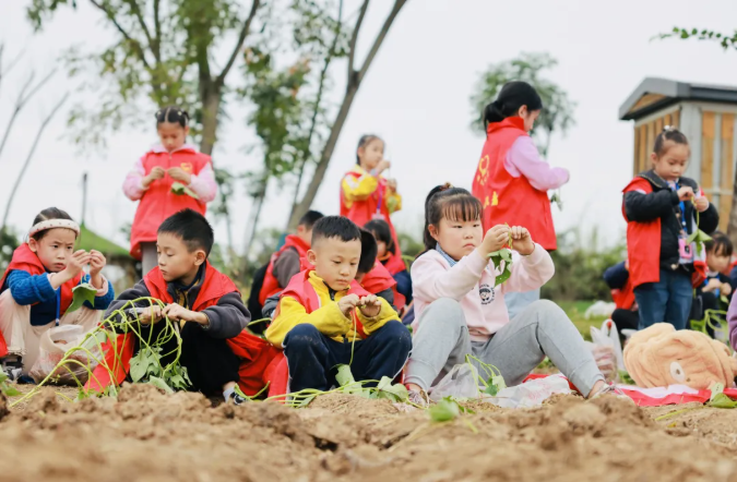 11月12日,绵阳市游仙区的小朋友参加研学,用红薯藤学习编手工 图据川观新闻